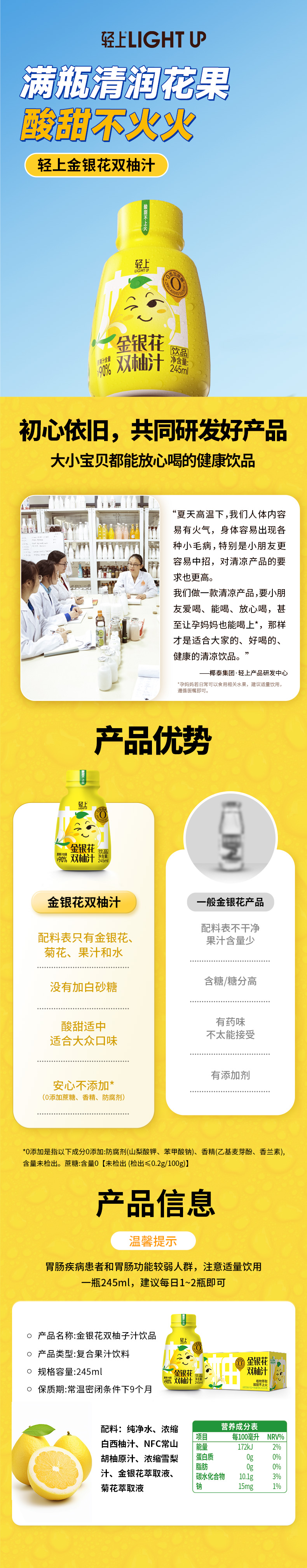 245ml轻上金银花双柚汁