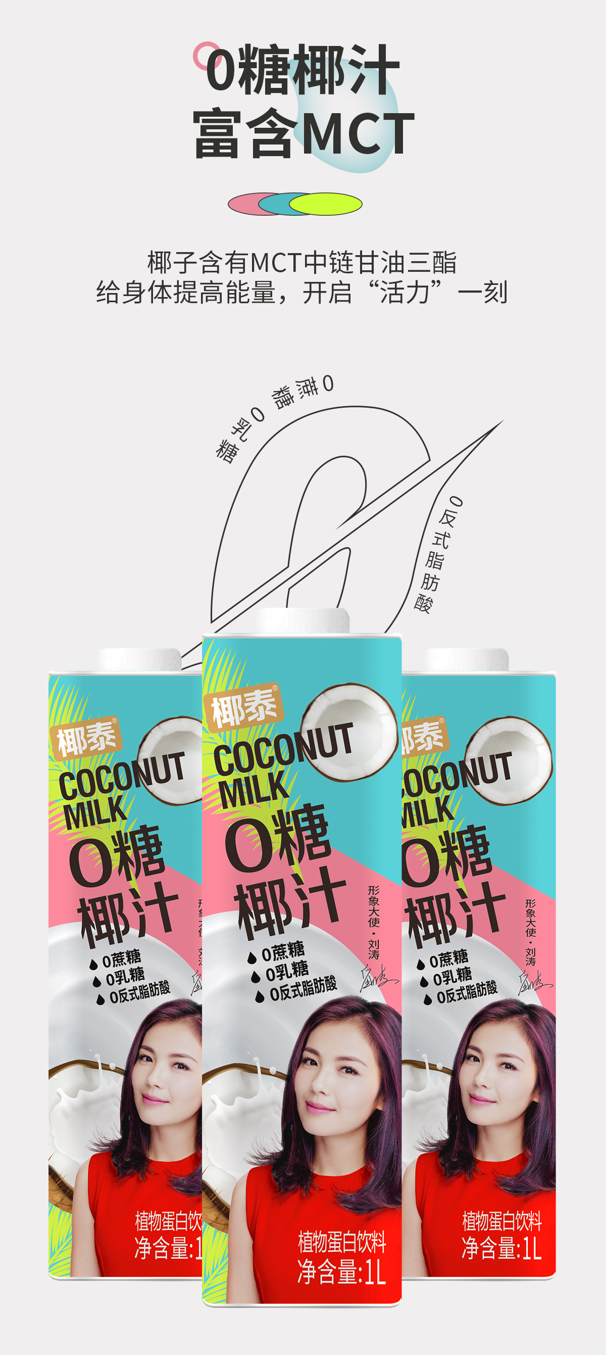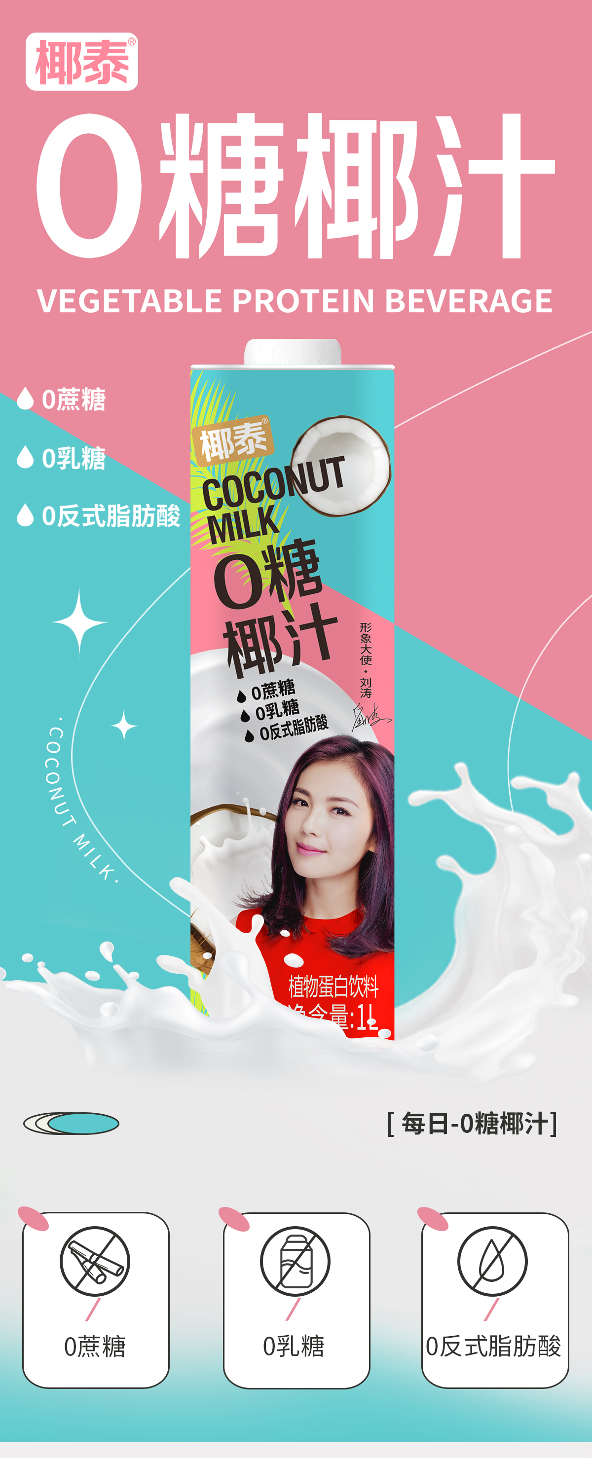 椰泰1L方瓶0糖椰汁