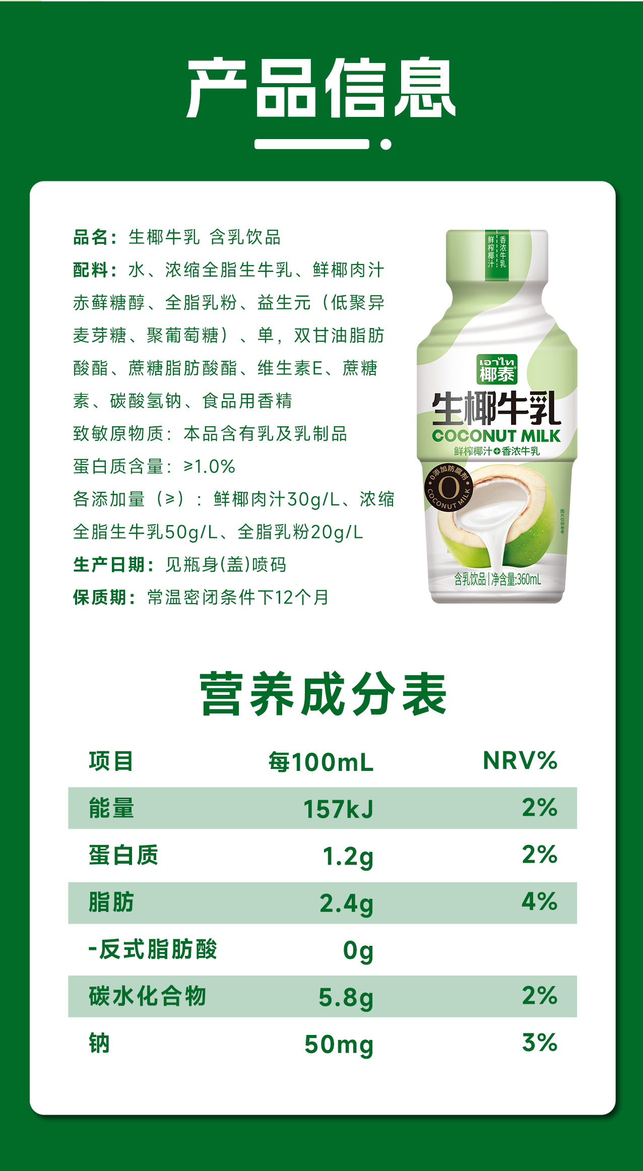 360ml椰泰生椰牛乳
